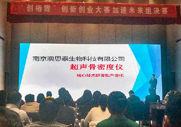 2019年4月15日,首屆“創(chuàng)棲霞”創(chuàng)新創(chuàng)業(yè)大賽頒獎典禮在南京紫東生態(tài)會議中心隆重舉行,澳思泰公司參賽項目“超聲骨密度儀核心技術(shù)研發(fā)”榮獲“加速未來組”三等獎。