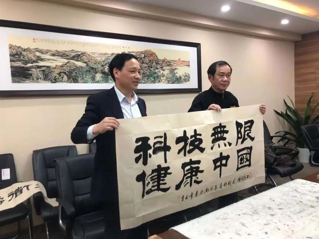 南京科進(jìn)實(shí)業(yè)有限公司成立于1996年,企業(yè)文化的核心是“誠(chéng)信、勤奮、專注、卓越”。張繼高先生現(xiàn)場(chǎng)書寫了“厚德載物”,寓意做人德為先,企業(yè)經(jīng)營(yíng)誠(chéng)信為本,要有奉獻(xiàn)精神;“天道酬勤”“業(yè)精于勤”告誡我們成功要靠自己的努力和“勤奮”;“寧?kù)o致遠(yuǎn)”告訴我們只有“專注”,以平穩(wěn)靜謐的心態(tài),不為雜念所左右,才能樹(shù)立遠(yuǎn)大的目標(biāo)。施雨先生現(xiàn)場(chǎng)作品“?!贝砹丝七M(jìn)追求“卓越”的企業(yè)文化。