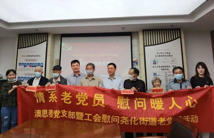 作者:科進 瀏覽:277 發(fā)布時間:2021/5/31 16:08:00“情系老黨員,慰問暖人心”。2021年5月28日,中共澳思泰黨支部書記俞政君帶領(lǐng)公司黨員和干部慰問了堯化街道部分老黨員,這是在慶祝建黨100周年之際,公司黨支部開展黨史學(xué)習(xí)教育系列活動之一,旨在關(guān)心老同志,學(xué)習(xí)老黨員,交流學(xué)習(xí)心得,傳承紅色傳統(tǒng),弘揚革命精神。