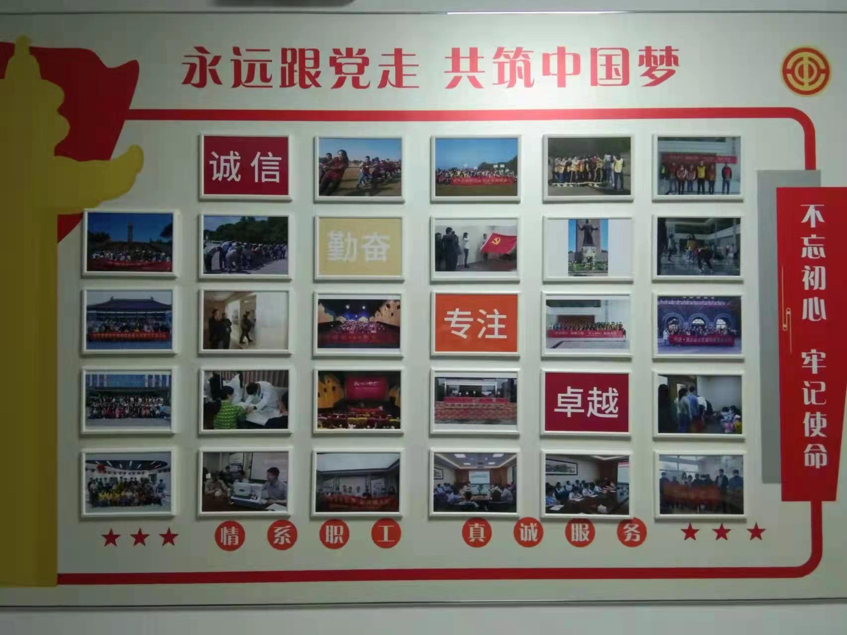 新的黨建文化墻,將公司的企業(yè)文化“誠信、勤奮、專注、卓越”蘊(yùn)含其中,企業(yè)文化與黨建文化的結(jié)合,展示了企業(yè)的品牌和影響力。