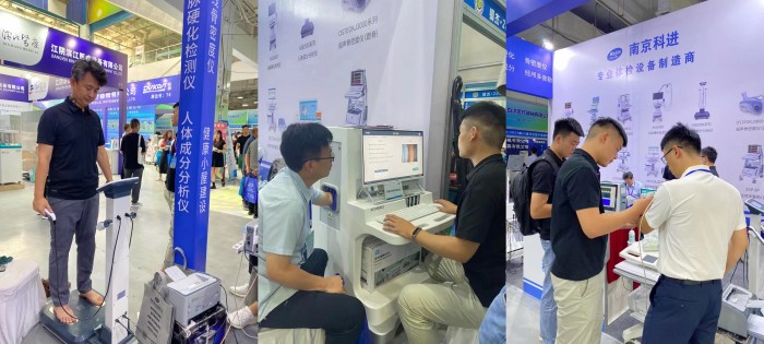 南京科進(jìn)經(jīng)理現(xiàn)場(chǎng)為參觀者進(jìn)行產(chǎn)品的專業(yè)講解,貼心的服務(wù)讓參觀者大為贊賞。現(xiàn)場(chǎng)展示的實(shí)物產(chǎn)品不僅可以讓參觀者了解產(chǎn)品的外觀和造型,而且可以讓參觀者進(jìn)行親身體驗(yàn),更加深入的了解儀器的功能和檢查流程。下面我們來(lái)看看現(xiàn)場(chǎng)照片。