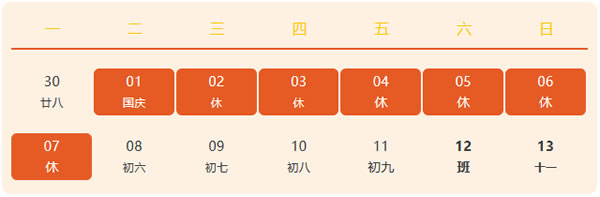 根據(jù)《國務院辦公廳關于2024年部分節(jié)假日安排的通知》,結合公司實際情況,現(xiàn)將南京科進國慶節(jié)放假安排通知如下: