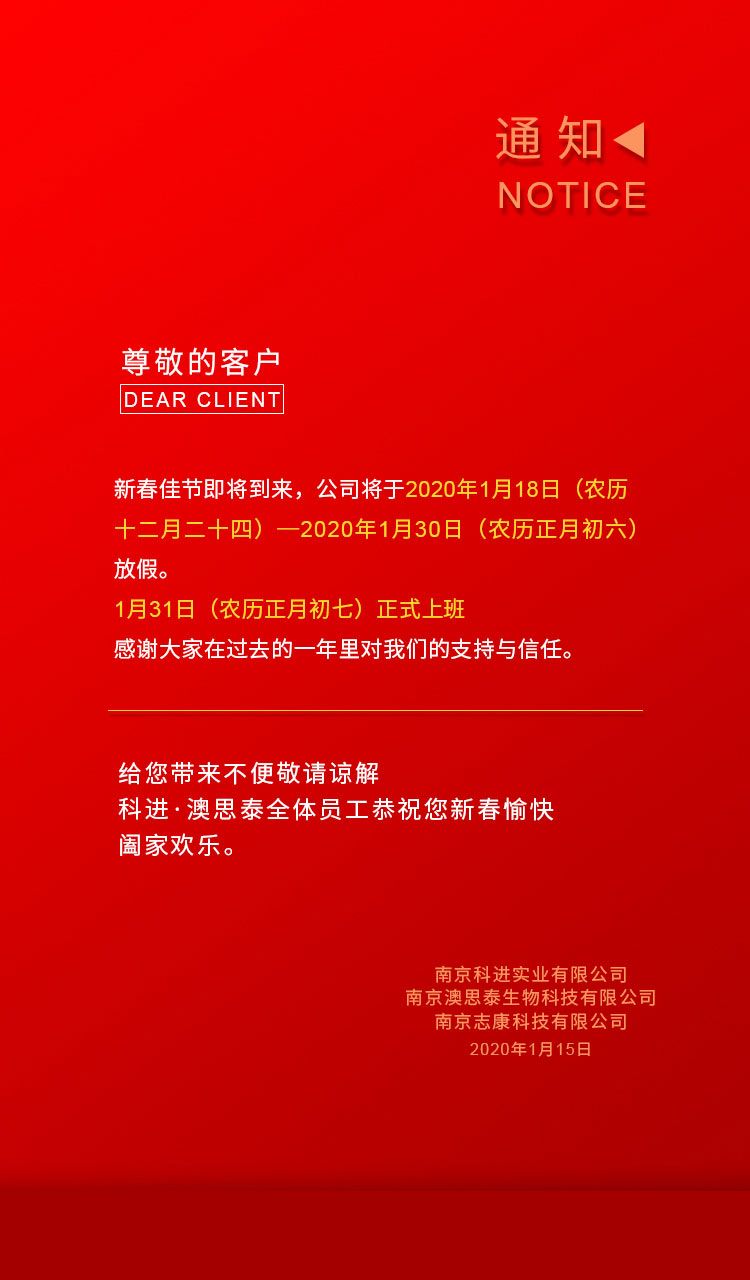 南京科進實業(yè)有限公司2020年春節(jié)放假通知