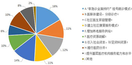調(diào)查結(jié)果顯示,占比前三位的依次是:非急診全面預(yù)約掛號就診模式(16%)、增加養(yǎng)老服務(wù)供給(14%)及社區(qū)醫(yī)生家庭管理(12%)。此外,醫(yī)聯(lián)體建設(shè)及分級診療”“建立社區(qū)康復(fù)服務(wù)模式”“醫(yī)療資源疏解推行醫(yī)藥分開等醫(yī)改措施同樣受到網(wǎng)民關(guān)注,占比均達(dá)到10%以上。分析認(rèn)為,從網(wǎng)民關(guān)注內(nèi)容可以反映出,預(yù)約就診模式、增加養(yǎng)老服務(wù)供給等醫(yī)改措施得到較多網(wǎng)民認(rèn)可。