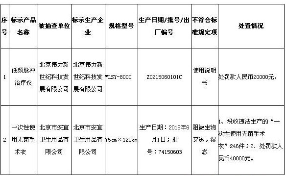 從北京市食品藥品監(jiān)督管理局官網(wǎng)獲悉,國家食品藥品監(jiān)督管理總局近期發(fā)布了《醫(yī)療器械質(zhì)量公告》(2016年第2期,總第10期),其中被抽驗項目不符合標(biāo)準(zhǔn)規(guī)定的醫(yī)療器械產(chǎn)品,涉及北京市2家醫(yī)療器械生產(chǎn)企業(yè)的2批(臺)產(chǎn)品。