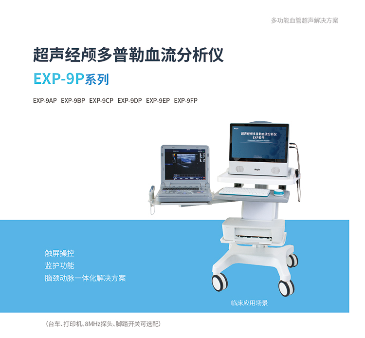 EXP-9P系列超聲經(jīng)顱多普勒血流分析儀是科進推出的九深度TCD儀便攜型解決方案,利用脈沖超聲波穿透顱骨的薄弱部位,對顱內(nèi)腦血管的血流進行檢測,還可以采用連續(xù)超聲波對淺表血管內(nèi)的血流進行檢測,能夠定量地評價腦血管和淺表血管的供血狀態(tài),可進行栓子檢測、發(fā)泡試驗,為診斷各種腦血管病變的性質(zhì)、程度和范圍提供依據(jù)。